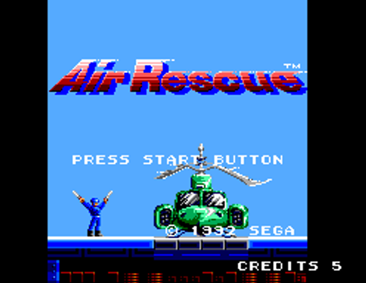 Air Rescue is similar to Choplifter!. You are a driver of a helicopter and the object is to rescue hostages without being shot down by soldiers, jeeps, tanks, choppers, and ground-based missiles, and bring them back to base. A maximum of four hostages can fit into the helicopter at any given time, so it is necessary to make more than one trip. You can choose from a variety of weapons that you can use to shoot down enemies. There are five rounds, which take you through theme parks, burning skyscrapers, army bases, sunken submarines, and caverns. The round ends when you have taken the required number of hostages to the bases.