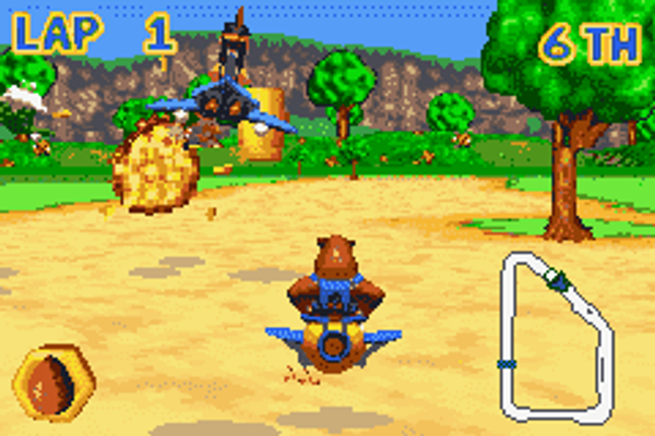 Banjo Pilot is the 4th installment of Banjo-Kazooie series. Formally known as Diddy Kong Pilot this is the basic kart racer having you race the B-K characters around tracks based on the classic platformers worlds such as Hailfire Peaks and Treasure Trove Cove. As with all kart racers there are numerous items across the track you can use to attack your enemies. It also features four person multiplayer using a Game Boy Advance link cable.