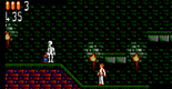Jonathan Harker can move left and right, jump and attack with a weapon, the most basic of which is a knife. The status display on the screen shows Harker's health bar, countdown timer to complete the level and currently held weapon. Throughout the levels question mark boxes (similar to the Mario games) can be found, attacking these will reveal power ups which include health restoration, timer increase and new weapons. Among these new weapons are axes, daggers and a shotgun. Question mark boxes can also be used as platforms to reach other areas and enemies. Each stage is divided into two sections: the "Daytime" and the "Nighttime". These are entirely different levels comparable to stage 1-a and 1-b. Harker must jump to various platforms and obstacles and defeat minor enemies throughout the levels. The end of a Nighttime level is usually guarded by a boss creature who must be defeated to progress.