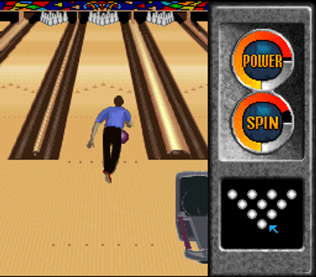 Before hitting the lanes, the player will be informed of the oil pattern of the lane which tells the player how the ball will react to that lane. Bowling is performed by choosing where to stand, then using the two meters that determine the amount of power and spin the ball will have when it's finally released down the lane.