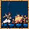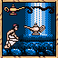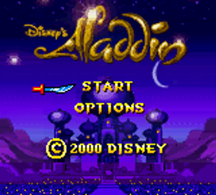 The player controls Aladdin, who must make his way through several levels based on locations from the movie: from the streets and rooftops of Agrabah, the Cave of Wonders and the Sultan's dungeon to the final confrontation in Grand Vizier Jafar's palace. The Sultan's guards and also animals of the desert want to hinder Aladdin in his way. He can defend himself with his sword or by throwing apples. Next to apples, Aladdin can also collect gems which can be traded for lives and continues with a traveling trader. Finding Genie or Abu icons enables bonus rounds. The Genie bonus round is a game of luck played for apples, gems or extra lives. In Abu's bonus round, the player controls the little monkey who has to catch bonus items that fall from the sky, but without touching any of the unwanted objects like rocks and pots.