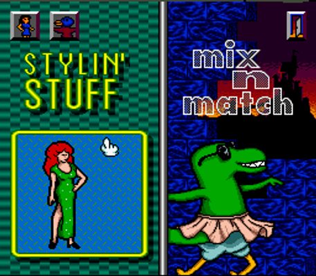 Stylin' Stuff: Here, the player can edit the sprite of a woman by selecting different clothes, hats or haircuts.