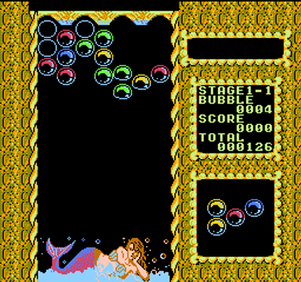 The gameplay is reminiscent of that of Tetris and Puzzle Bobble in that the goal is to steer clusters of rising bubbles and place them so that they connect to other bubbles of similar color along the top of the screen. If the sufficient number of similar bubbles are touching, they will be cleared and all free neighboring bubbles will rise further, allowing for combos. If the accumulated bubbles on screen reach the bottom of the playing area, the game is over. If a level is completed, the player will be rewarded with erotica.