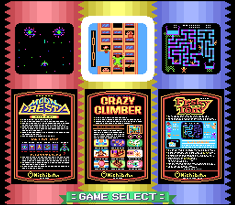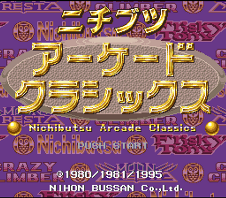 Nichibutsu Arcade Classics is a compilation for the Super Famicom and Sony PlayStation released in 1995. It features three of Nichibutsu's (or Nihon Bussan) Arcade games from the early 80s, adapted for consoles but otherwise left as-is.