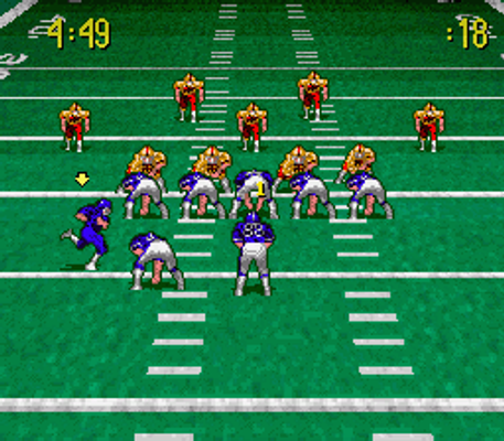 The games options allow the player to choose to play on 6 different field surfaces (grass, mud, dirt, snow, rain and artificial turf) and to choose how long the game will last (2, 5, 10 or 15 minute quarters). There are also no penalties in this game whatsoever.