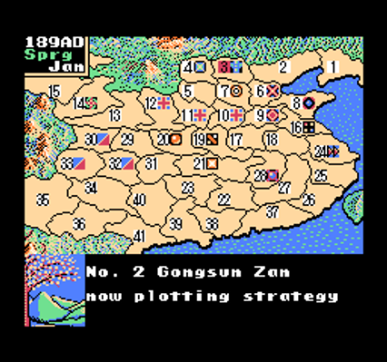 The sequel to Romance of the Three Kingdoms. The game concept is still the same, though they did improve a lot of features that one may consider 'disturbing' from RTK I (e.g. Generals dying easily due to disease, etc.). RTK can be said to be much more 'stable' where players no longer have to worry that much about time length in the game, as the game take a slower time rate to allow the players to build up their forces without much interference. The RTK II gameplay and interface is closely similar to Nobunaga's Ambition II.