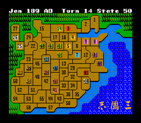 Based on the events of the Three Kingdoms era in China (3rd century), and on Luo Guanzhong's famous novel Sanguo Yanyi, you take command of one of the many warlords rivaling for control after the Yellow Turban Rebellion.