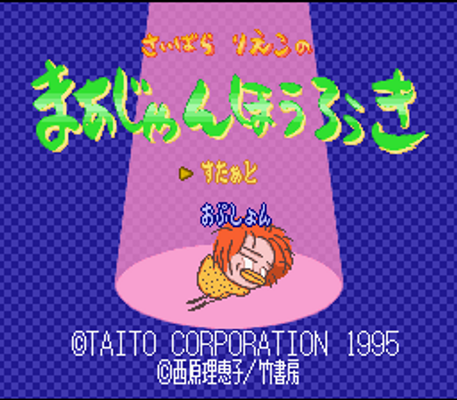 Saibara Rieko no Mahjong Hourouki ("Rieko Saibara's Mahjong Travelogue", roughly) is a mahjong game for the Super Famicom that features the art of its namesake Rieko Saibara, a moderately famous manga artist that focuses on "slice of life" manga strips. The game is filled with her distinct and cartoony style, from the portraits of the mahjong players to the background and title screen characters.