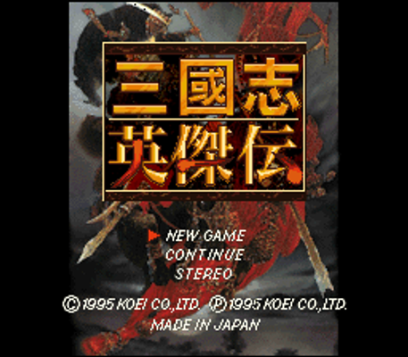Sangokushi Eiketsuden ("Romance of the Three Kingdoms: Brave Hero Biography") is a spin-off of Koei's strategy series Sangokushi, or Romance of the Three Kingdoms, that focuses on a single major character from the conflict.