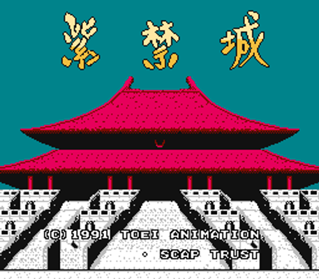 Shi-Kin-Joh ("Forbidden City") is a puzzle game similar to Sokoban in which the player must reach a goal by pushing oversized mahjong tiles which block the path. When two matching tiles are pushed next to each other, they disappear. Other types of tiles w