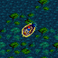 While fishing, the player will have an overhead top-down mode of the lake, using the "A" button to reel in their lure and using the D-Pad to manipulate movement of the lure. Fish can be seen through the water, outlined in a light color while bigger fish are seen stationary and cast in a dark shadow. Once the player hooks the fish, a meter will show up at the bottom, showing the tension of the line, when it hits to the far right of the meter, the line will snap. The line can also be manually cut by pressing the "A+B" buttons together.