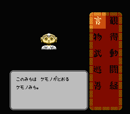 Tao (??, lit. "Road") is an adventure video game for the Nintendo Family Computer about living the life of a nomad seeking spiritual enlightenment.