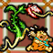 Fred and Barney are not the only characters that move about the playing field. You will also run into their wives Betty and Thelma as well as other characters that are also looking for the treasure. When Fred or Barney encounter their wives, they are dragged a few fields back. Other characters give them useful items if you can beat them at a challenge (usually a race).