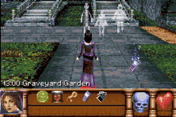 Remember the old Haunted Mansion ride at Disneyland? Probably the better question is, how could you not? The creepy hallways, the gliding chairs, the crystal ball, and all of the ghosts -- the popular attraction has frightened children and entertained adults for decades. And now the ride has come to life on the silver screen and on the Game Boy Advance. Developed by Pocket Studios, the game itself follows a standardized action-adventure formula. Main hero Zeke, armed with a magical lantern called the Beacon of Souls, moves about the mansion environment, captures the 999 ghosts, solves puzzles and restores light to rooms.