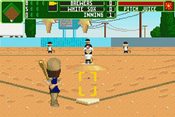 Atari's BACKYARD series is based around the idea of taking original kid characters and teaming them up with the biggest names in sports to play baseball, football, and several other sports. BACKYARD BASEBALL 2006 for the GBA teams player-created characters with Major League Baseball hard-hitters from all 30 MLB teams to compete in tournaments, exhibition games, and other challenges. As the name suggests, the games are mostly played on backyard lots, although some fields, like the Gater Flats swamp, probably don't exist in many kids' backyards. Players have the choice of creating custom characters for their team or recruiting kid versions of Major League Baseball stars like Alex Rodriguez, Pedro Martinez, Ichiro, and Carlos Delgado. In addition to season mode, players can play pickup games, compete in home run derbies and fielder's challenges, and select from three different difficulty levels for each mode. Claiming victory in these categories will unlock additional MLB players and stadiums, plus the ability to upgrade current players with moves such as fireball pitches. Fans of the BACKYARD sports series will enjoy building a team of kid versions of their favorite MLB stars. Baseball game fans shouldn't automatically dismiss the kid aspect of the game while not as serious as some of the other baseball titles, BACKYARD BASEBALL 2006 is still a fun, challenging baseball game featuring everything great sports games should have.