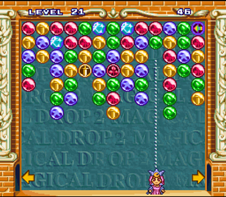 In Magical Drop II, you control a clown that can grab and throw balloons. You have to match three balloons of the same colour or more vertically to pop them and clear the screen.
