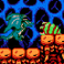 In Dragon Fighter the protagonist is a fighter who can turn into a dragon. In this side-scrolling action game the hero can walk, jump, and slash with his sword. He can also charge his sword to fire a magical projectile. The real power-up, however, is that he can transform into a flying dragon. When this happens, the game turns into a shmup-style game in which the scrolling moves at a constant rate and the dragon can shoot fireballs in a spread formation. Transforming into a dragon is restricted by a power meter.