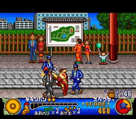UFO Kamen Yakisoban: Kettler no Kuroi Inbou ("UFO Kamen Yakisoban: Kettler's Black Conspiracy") is a brawler featuring UFO Kamen Yakisoban, a character designed to market Nissin's Yakisoba UFO brand of instant yakisoba circa 1993-1995. It understandably features a variety of foodstuffs.