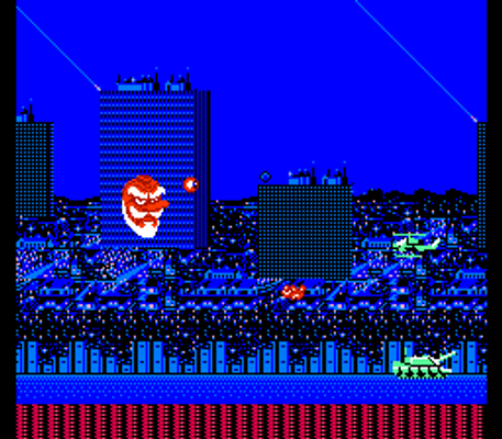 What makes this so unusual however is that "great head of the samurai" is to be taken literally and Namakubi therefore is a giant disembodied head. His main weapon is the ability to shoot projectiles from his eyes and bombs from his mouth which he fires at various enemies, objects and buildings. Furthermore, should a zombie hostage fall out a window he can rescue them to slowly power up his attacks.