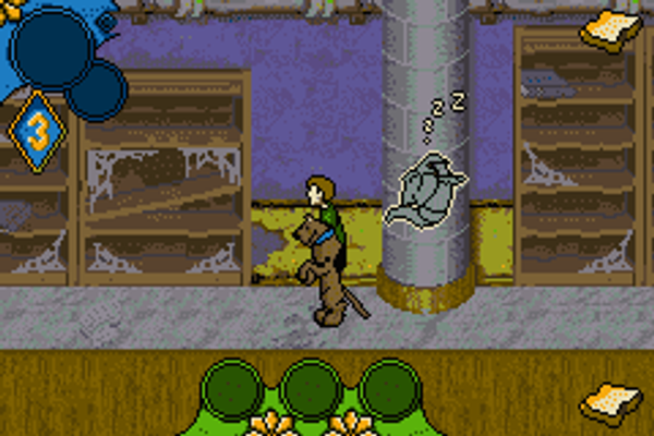 Based on the cartoon series, in the Game Boy Advance version players must lead Scooby-Doo and Shaggy through five huge episodes, exploring creepy environments such as an abandoned movie set, the ghoulish Wild West, a bayou, and a cobweb covered labo.