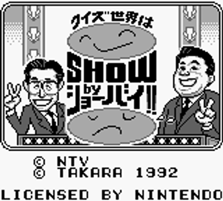 Quiz Sekai wa Show by Shoubai!! is a quiz game developed by TOSE for the Game Boy console, released only in Japan. The game features various Japanese game-show characters and is based on a popular Japanese game-show called the Gakida-Quiz.
