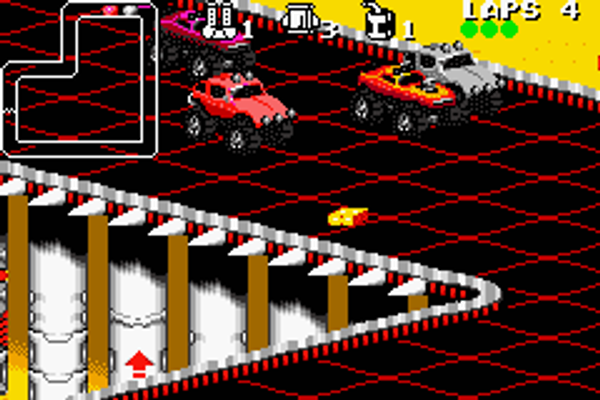 Featuring multiple racetracks and a classic soundtrack, Rock N' Roll Racing puts players behind the wheel for an over-the-top demolition-racing experience. In the game, drivers take their pick from a variety of cars, each equipped with a selection of weaponry designed to help them outmaneuver the competition. Taking advantage of the Game Boy Advance Game Link cable, players can also go head-to-head against each other for fast-paced multiplayer action.