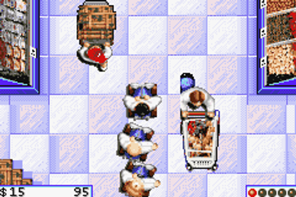 Stars of television and cinema, and now stars of their own video game. Join Moe, Larry & Curly (in no particular order) who must collect $5000 to try and save an orphanage and the young children who live there from the evil banker, all while keeping pie out of their face. Featuring platform level designs based on classic Stooge scenes from their many TV episodes and movies and level objectives re-living many of their antics plus original Stooge voices and Stooge trivia.