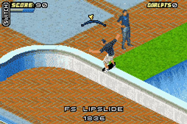 The main feature of this game is it's redesigned career mode. When beginning a level, you have all the time in the world to skate around, perform tricks, get a feel for the level, without the hassel of any goals or time limits. When you're ready to attempt a goal, simply find a pro skater, talk to him, then receive the goal, similar to Dave Mirra Freestyle BMX. Goals are similar to the previous games, such as collect SKATE, get a certain amount of points, transfer over this and grind that. There are new goals, however, such as collecting the word COMBO while doing one big combo. Miss a trick, and goal fails. Once all regular goals are accomplished, you can attempt the Pro Goal, which is specific to each skater, and is extremely hard.