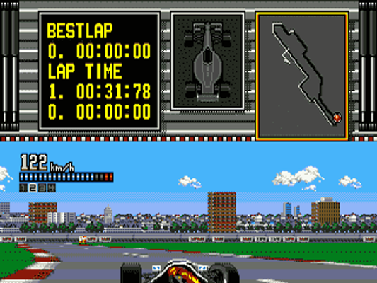 There is a Time Attack mode, allowing you to go for as fast a laptime as possible on any of the game's 20 circuits (which include the 16 tracks of the 1992 Formula 1 season), as well as a full season mode, with qualifying and the race itself. Weather can be customised in the Time Attack mode but is randomly chosen in Grand Prix mode, while you can only choose one of the D-tier teams (the 4 weakest of the 16) in grand Prix mode, but can drive for McLaren, Williams et al in Time Attack.