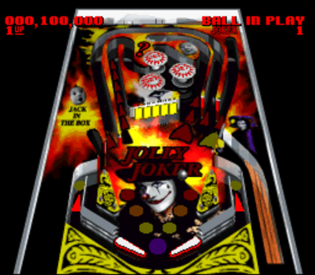 Behind the Mask is a pinball simulator for the SNES featuring three completely unique tables: the clown-themed "Jolly Joker", the pirate themed "Blackbeard and Ironmen", and the fantasy-themed "Wizard".