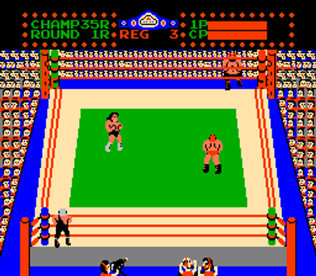 Attack your opponents with Body Slams, Drop Kicks, Backbreakers, Flying Head Butts, or even throwing them out of the ring! To win, it's a pin for a count of three.